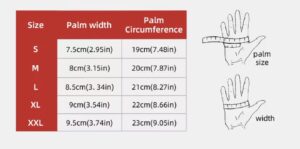 Mărimi disponibile (lățimea palmei):
